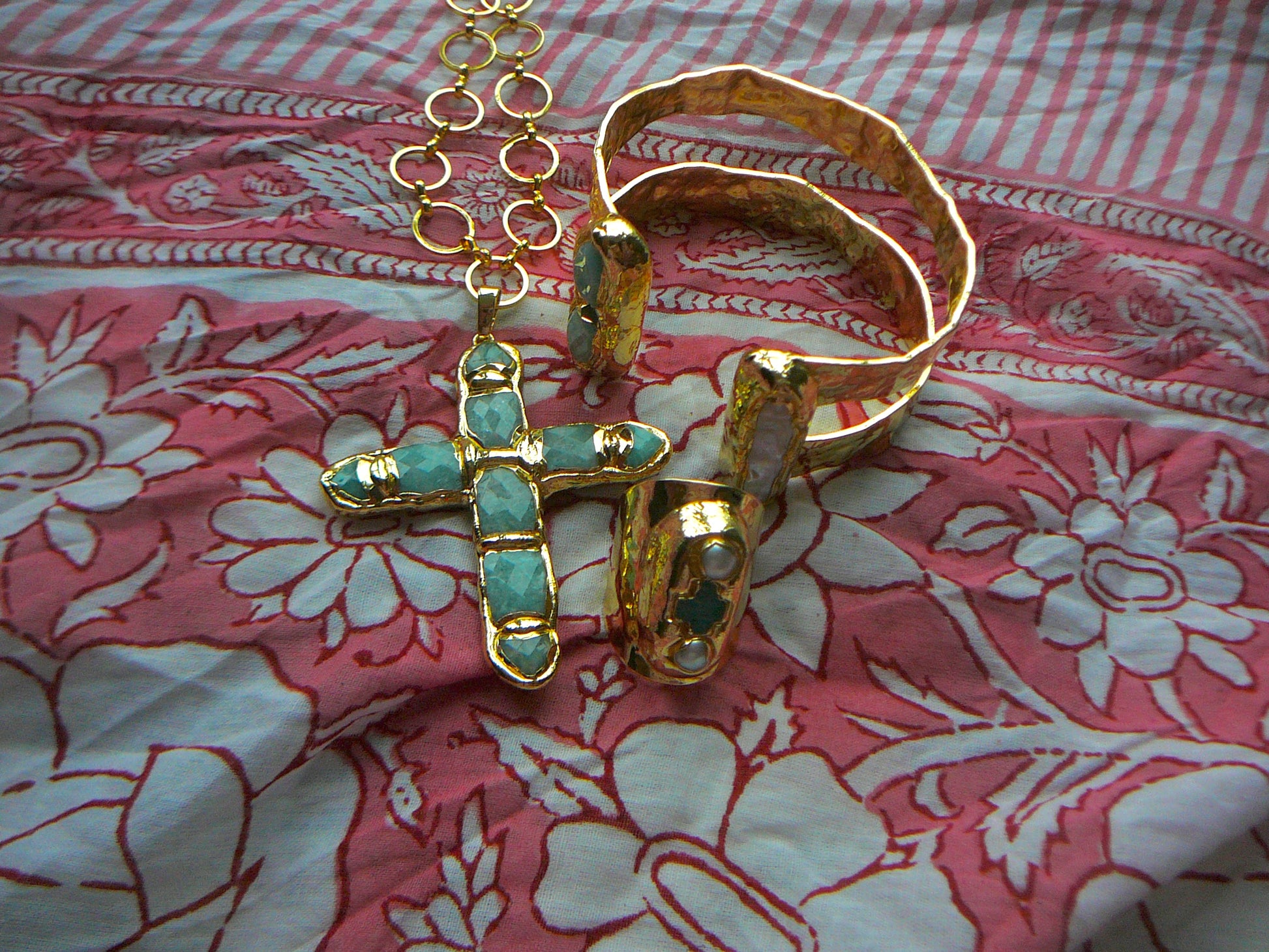 the perfect 14k gold plated gold bangle with peal and turquoise accents!